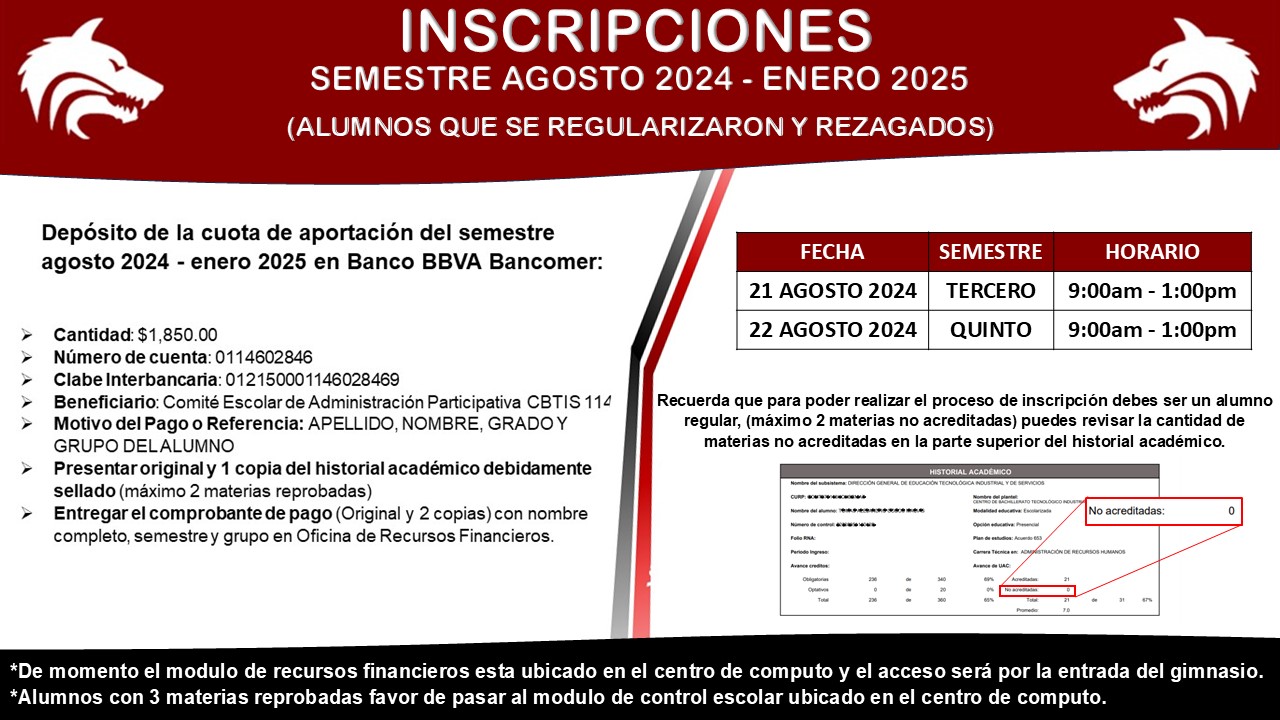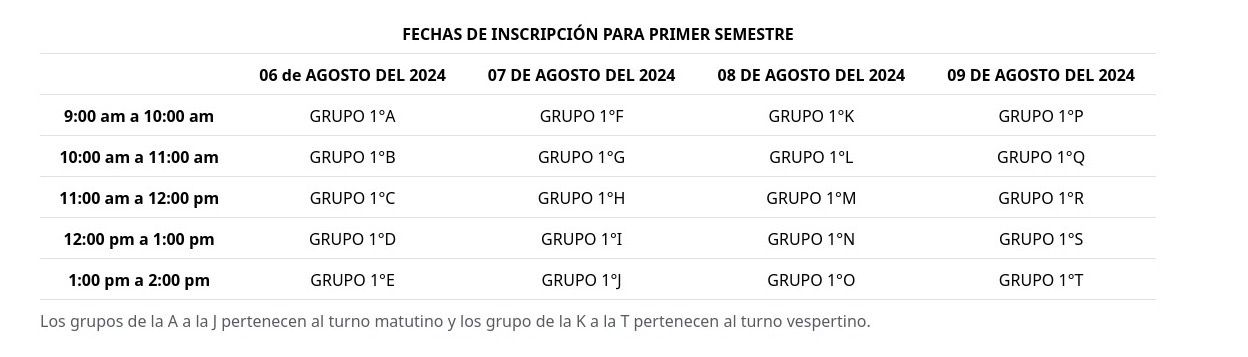Fechas de Inscripción 1er. Semestre