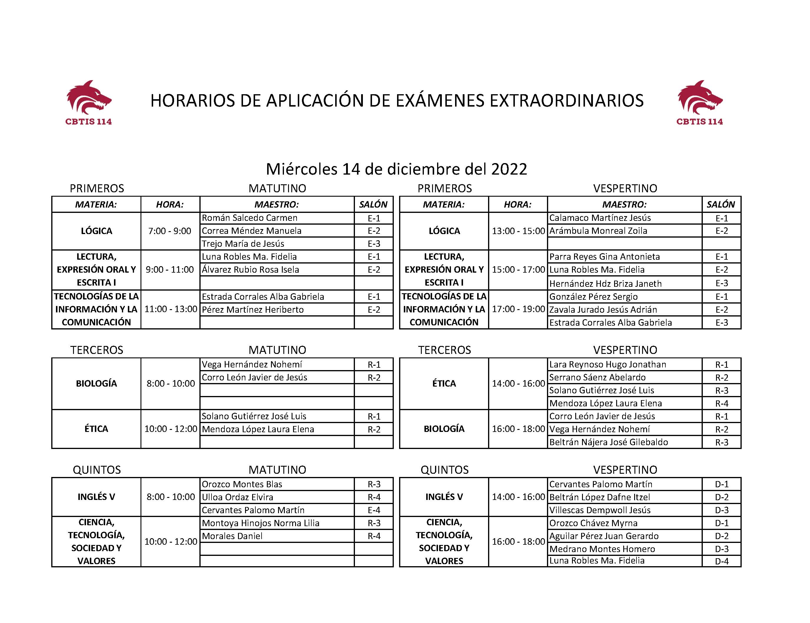 Se comparten los horarios de los recursamientos, los cuáles se llevarán a cabo del 9 al 19 de enero de 2023, favor de presentarse con el docente que llevaban la materia, en caso de que deban más de tres, favor de acudir a servicios escolares.