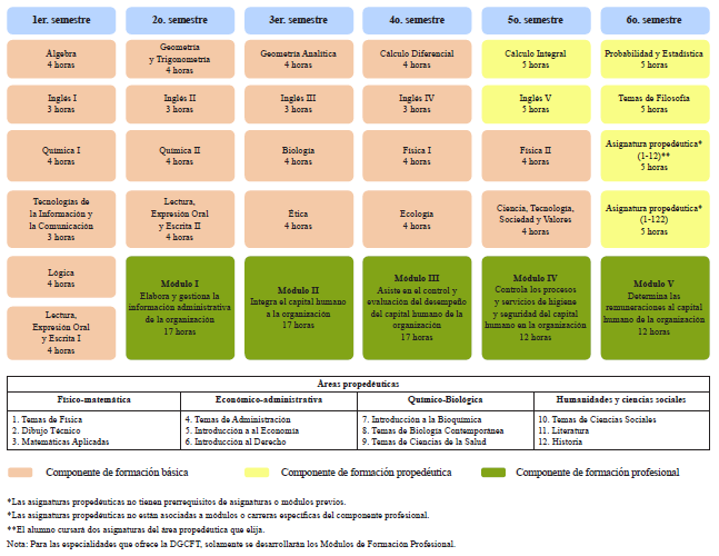 La formación profesional se inicia en el segundo semestre y se concluye en el sexto semestre, desarrollando en este lapso de tiempo las competencias para elaborar y gestionar la información de la organización, integrar el capital humano a la organización, asistir en el control y evaluación del desempeño del capital humano de la organización, controlar los procesos y servicios de higiene y seguridad del capital humano en la organización, determinar las remuneraciones al capital humano de la organización.